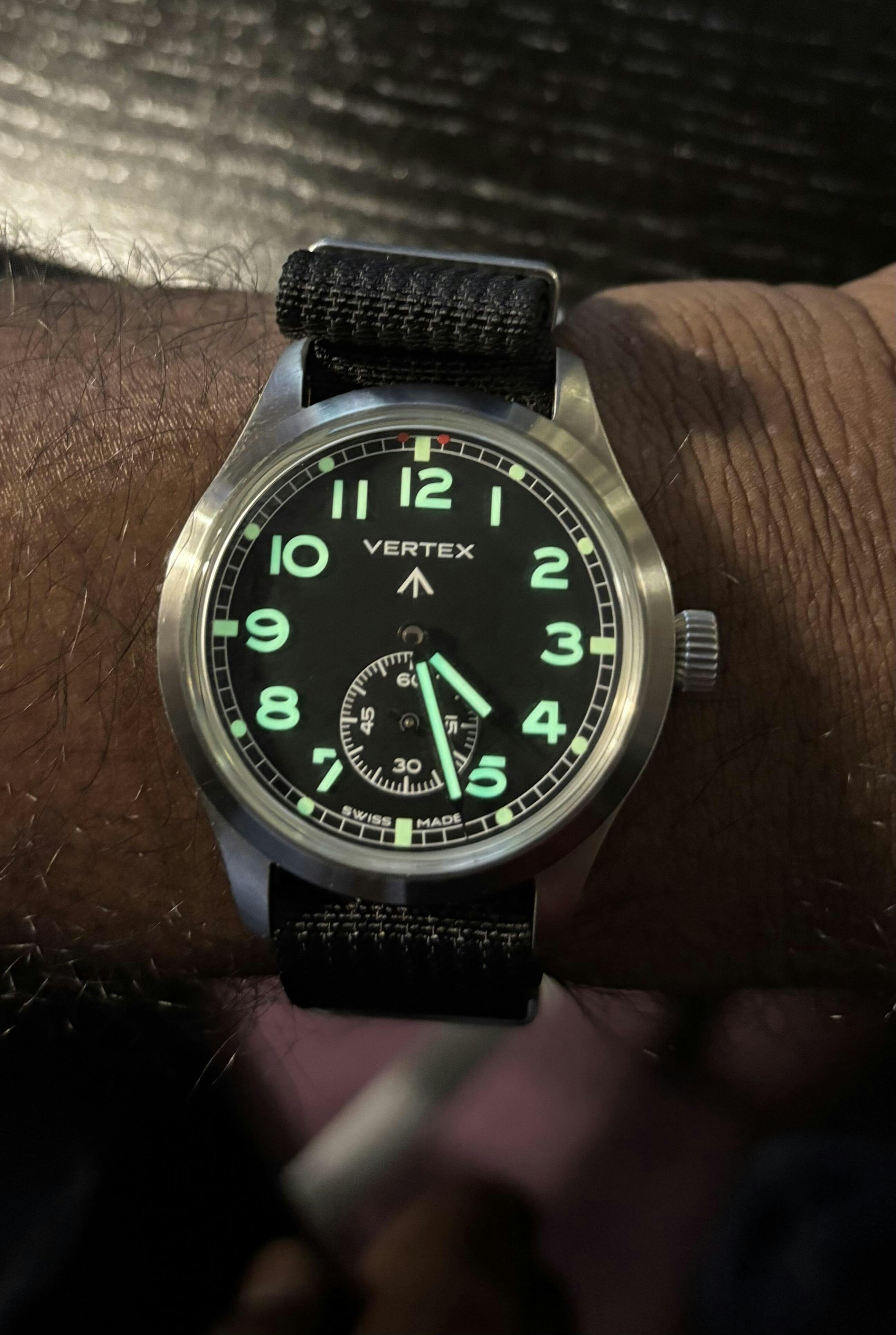 I’ve owned several Vertex watches, and like them all, the M100A is truly something special. It’s incredibly well built, with remarkable dial depth and phenomenal lume. On top of that, it’s a real strap monster. The M100A has so much character and purpose, especially with its connection to the Dirty Dozen story. I absolutely love mine.