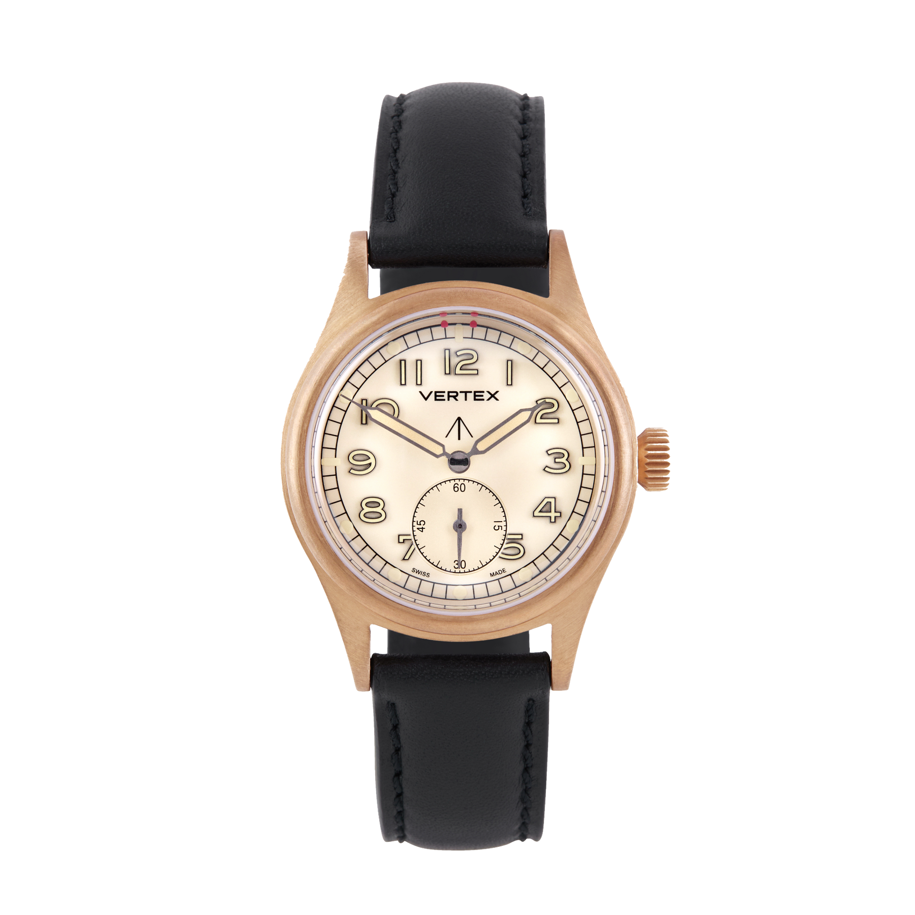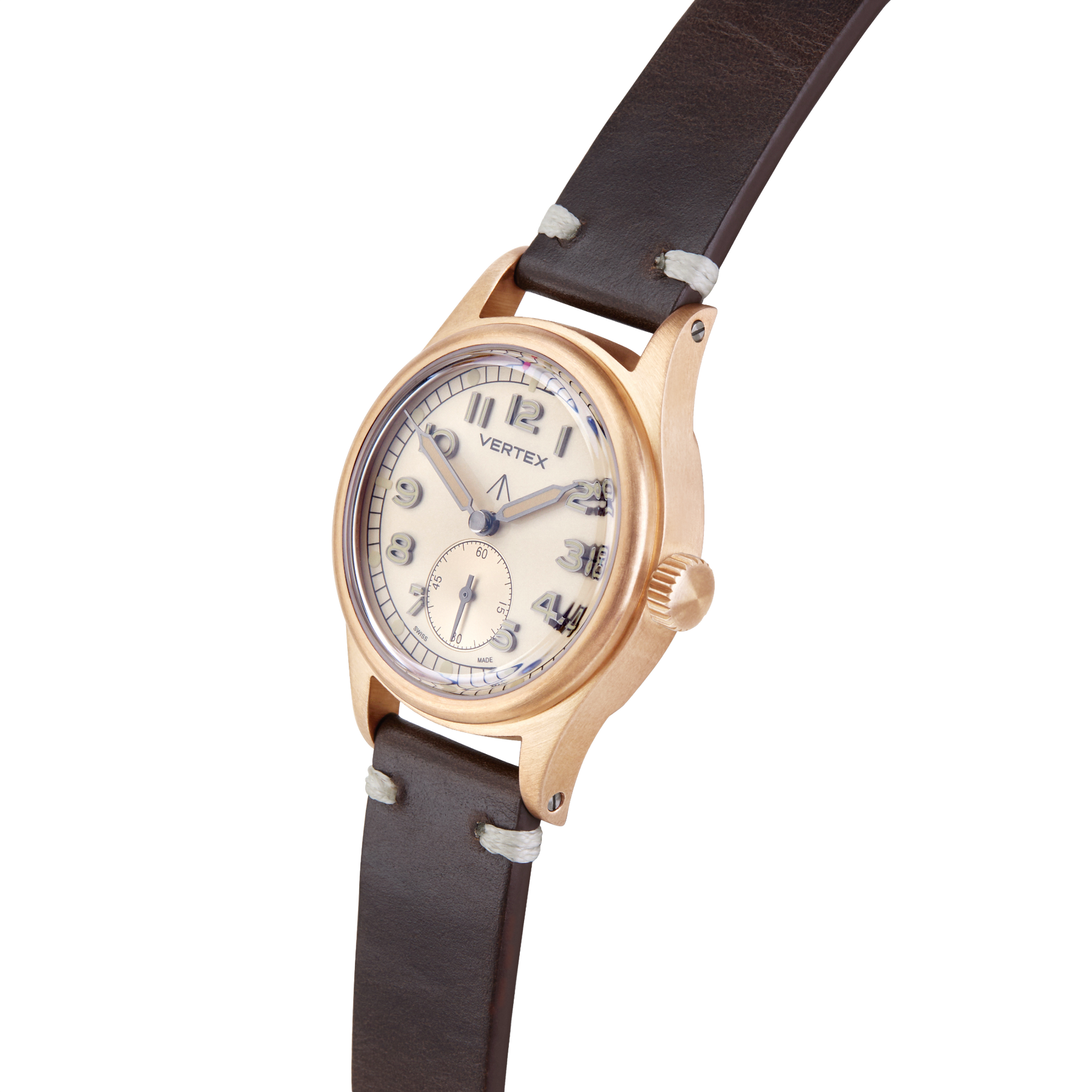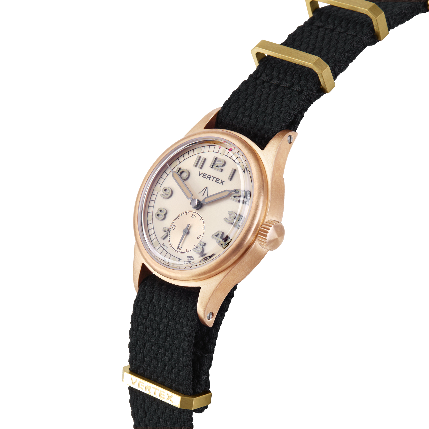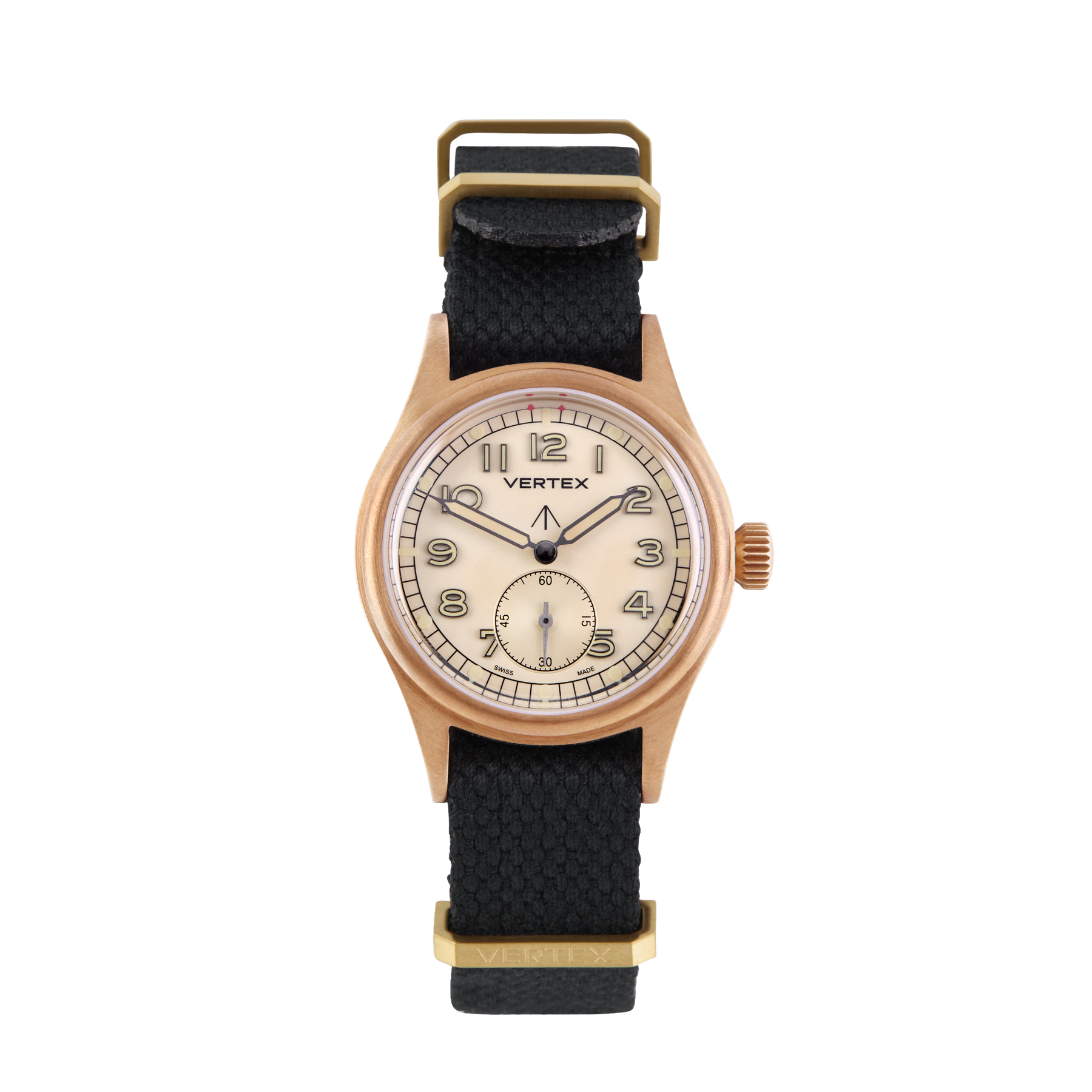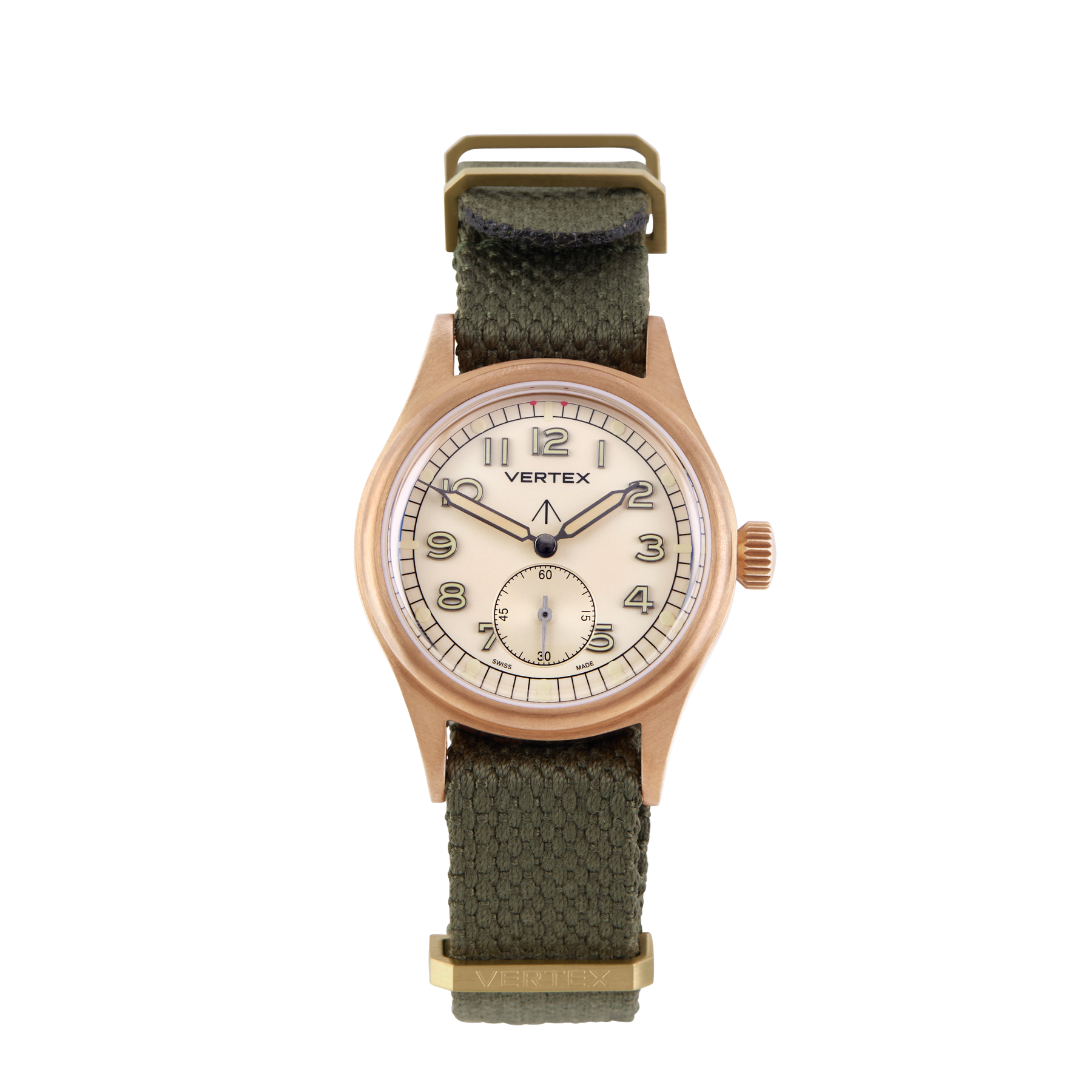 At its heart is a refined sand-coloured dial, designed to evoke the shifting tones of the desert landscape. For the first time on a Vertex watch, the model features filled metal indices, offering enhanced depth, clarity, and durability while maintaining the legibility that defines Vertex military timepieces.