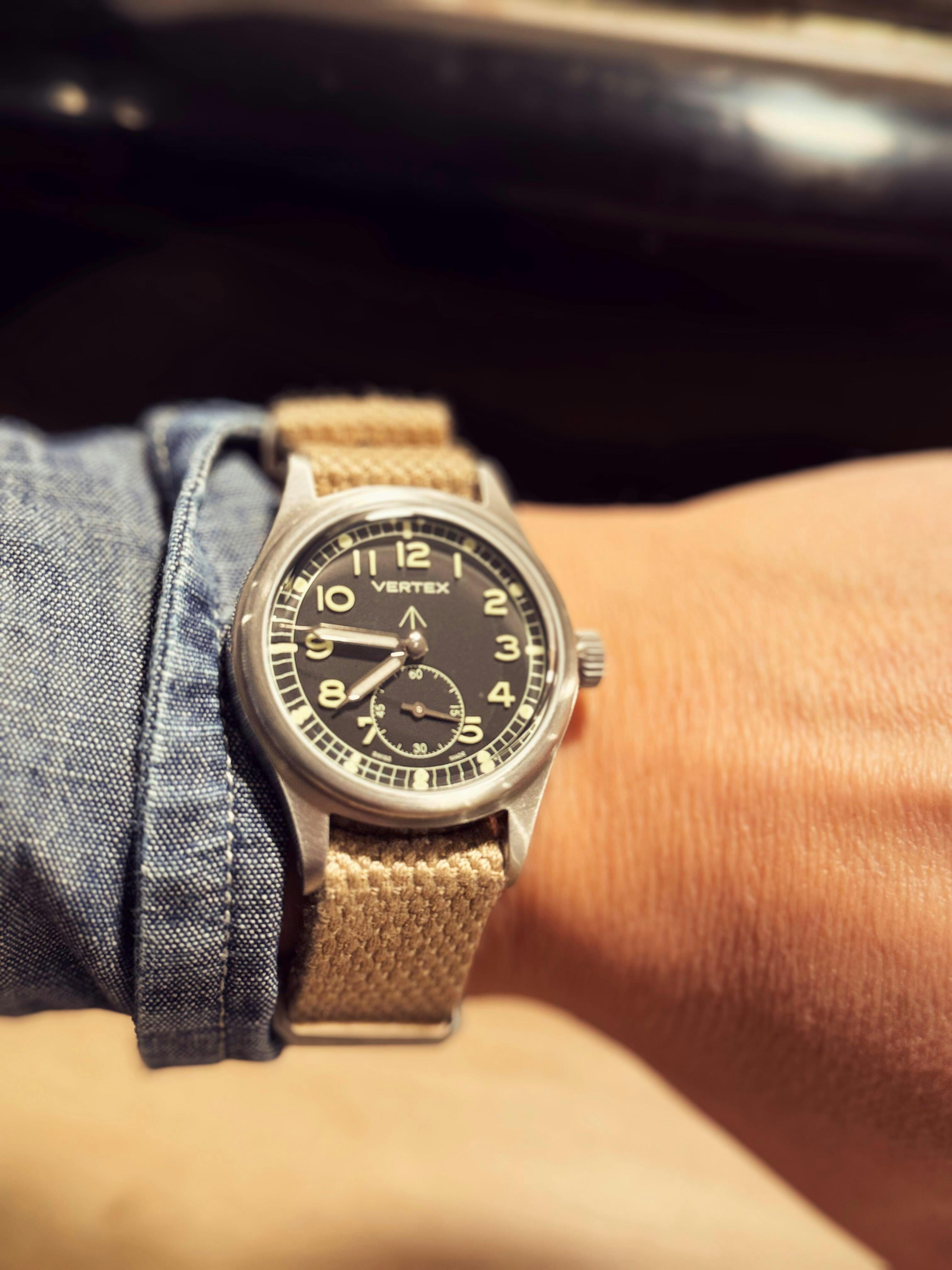 Super efficient and genuine customer service from before to after purchase. I received my M36 within a couple days super easily. Stunning watch ! Way beyond my expectations. It is simply superb and doesn’t have to blush compared to other much more expensive military watches. The level of finish of every single detail deserves applauds (seringe hands, broad arrow, engravings, boxed glass) and the package (box, bracelet, bands) is just so cool. Bravo Don, bravo team Vertex for bringing this Dirty Dozen watch back to life. The modern version is already an icon in itself.